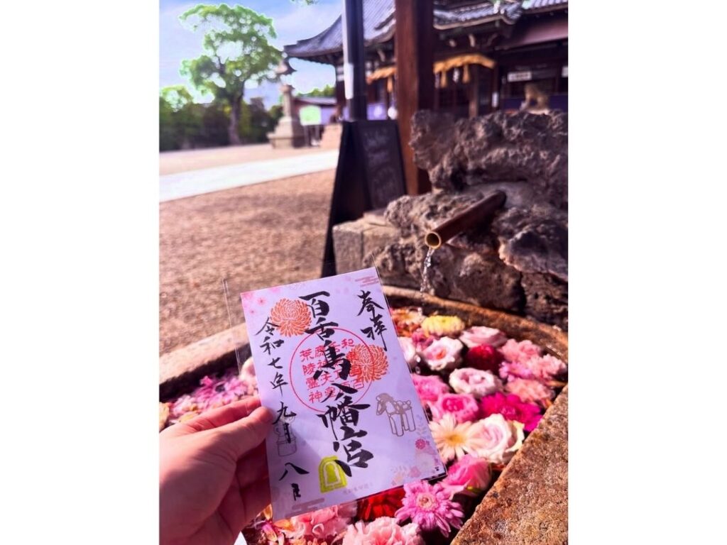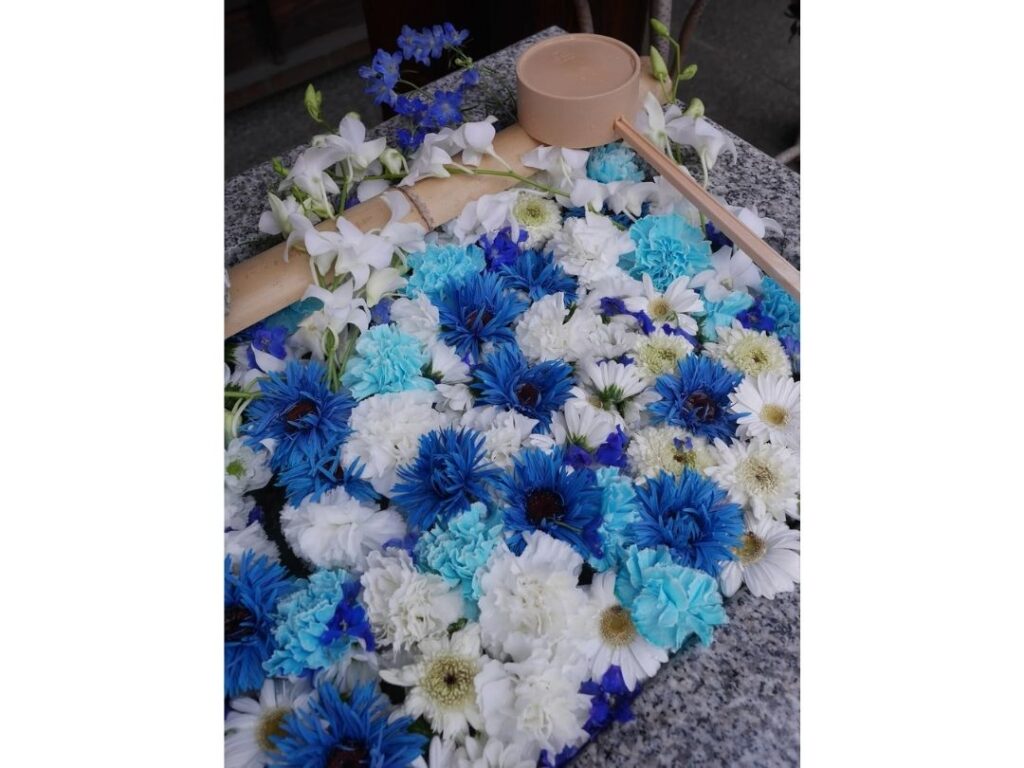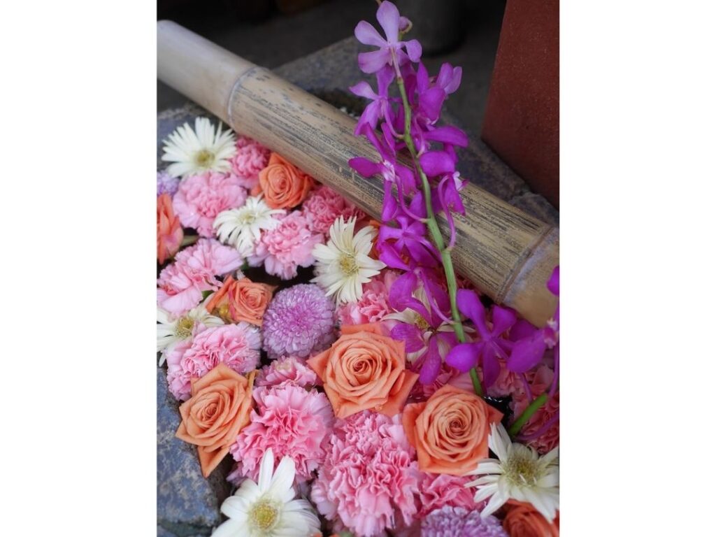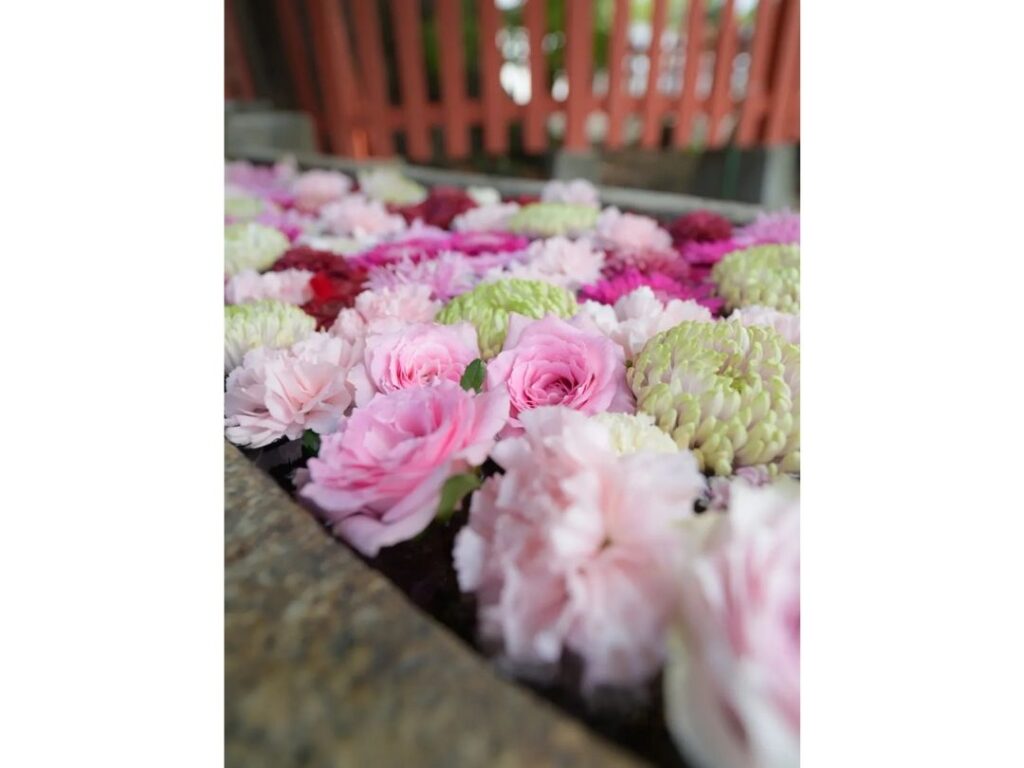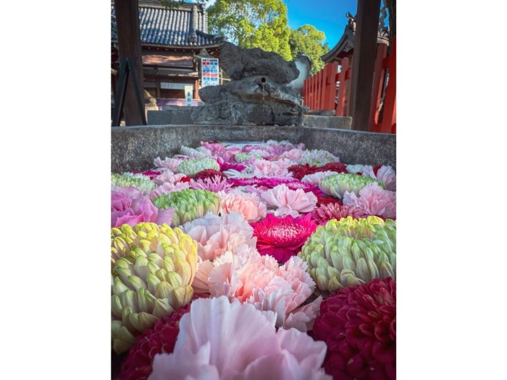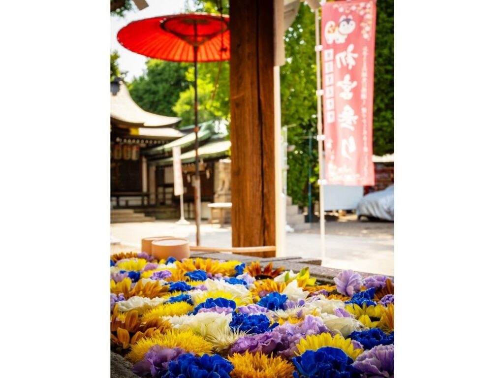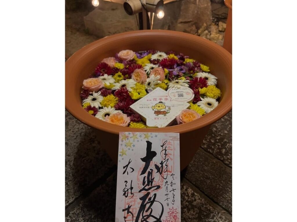 参拝の途中に見つけた色鮮やかな花手水、陽ざしに映える御朱印帳、季節を感じる風景など