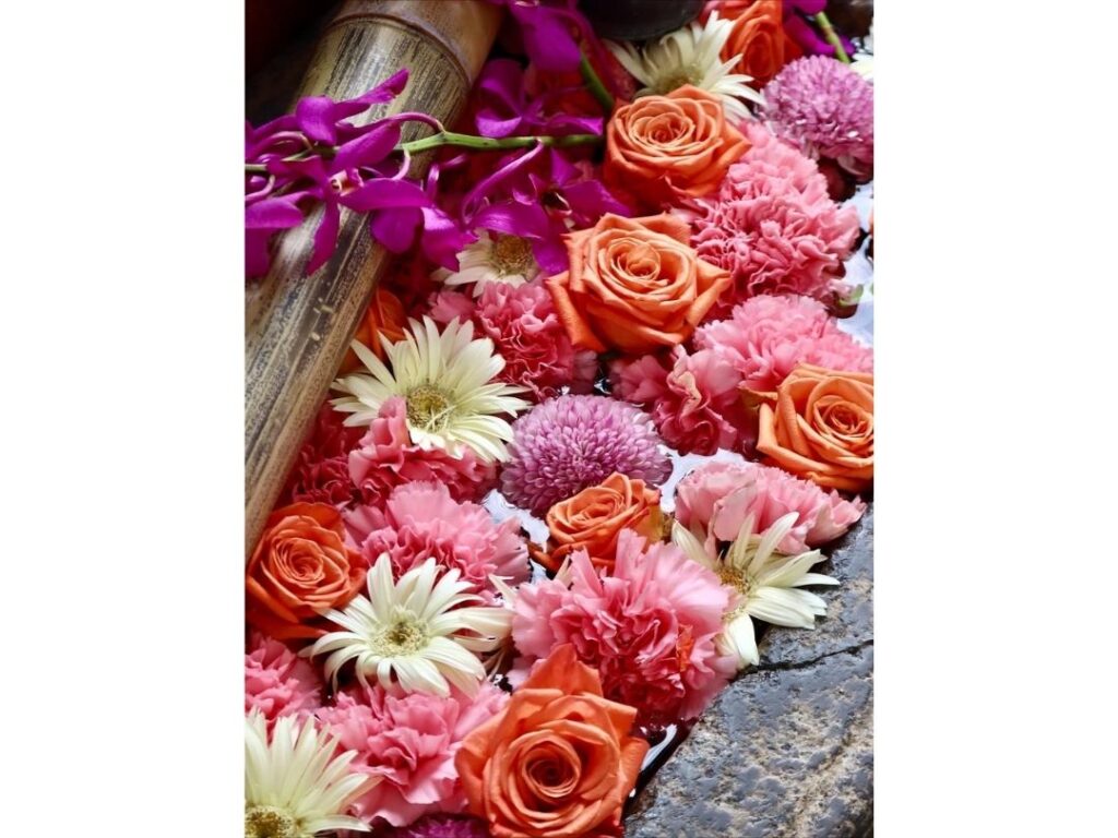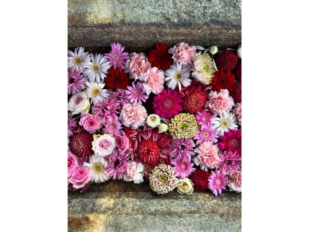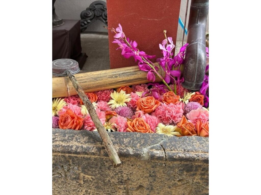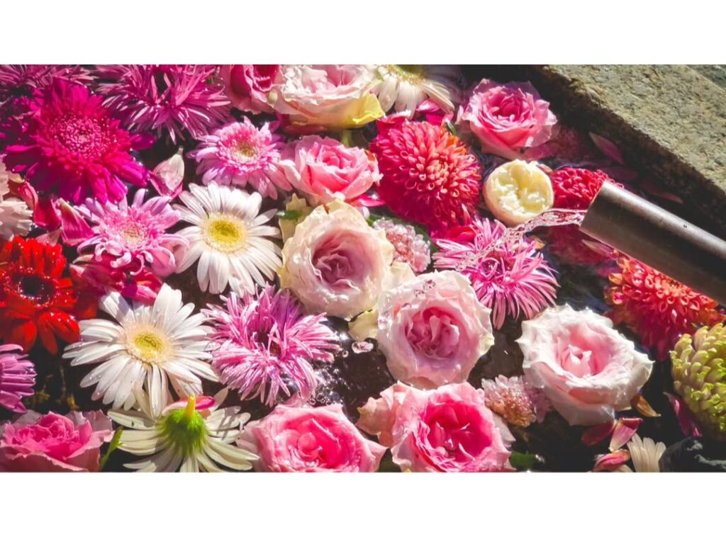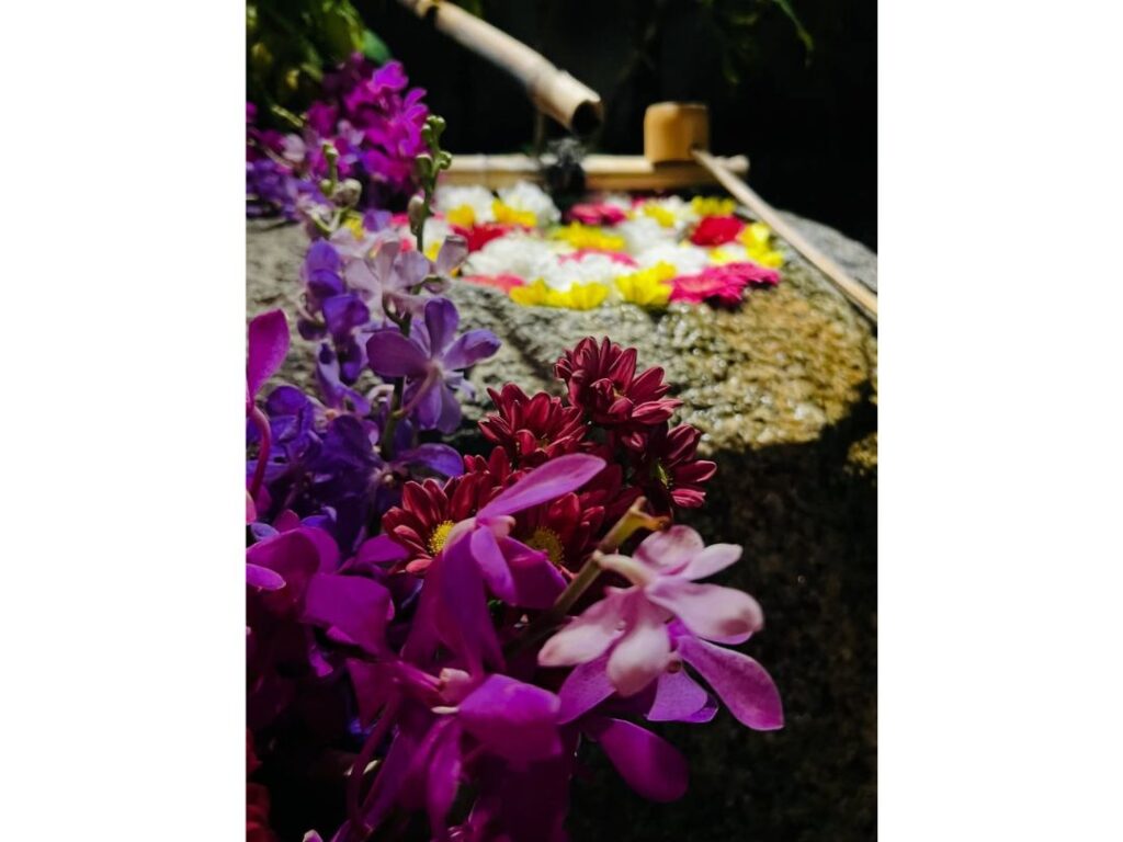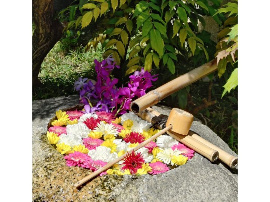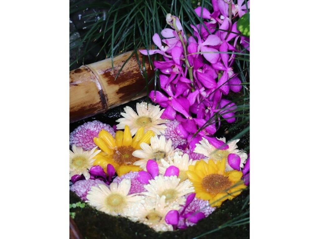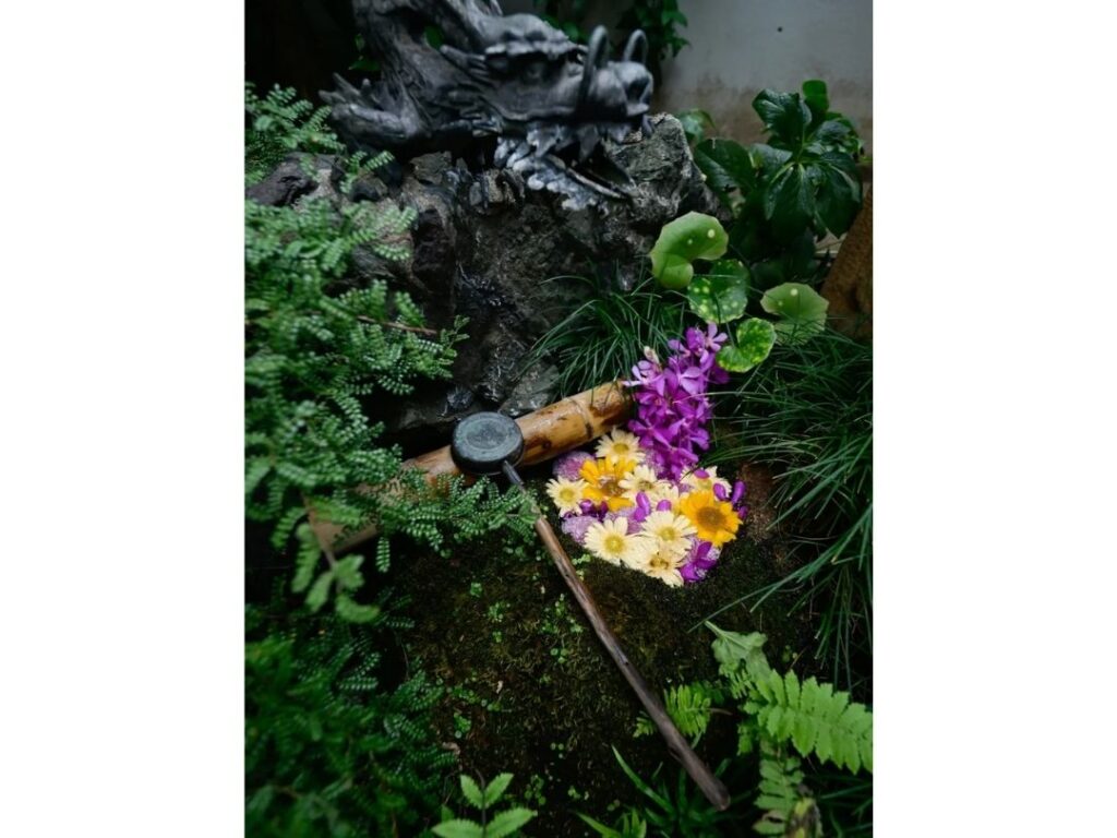 参拝の途中に見つけた色鮮やかな花手水、陽ざしに映える御朱印帳、季節を感じる風景など